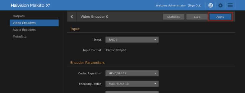 When you’re happy with your encoder parameters, click on Apply on the top right.