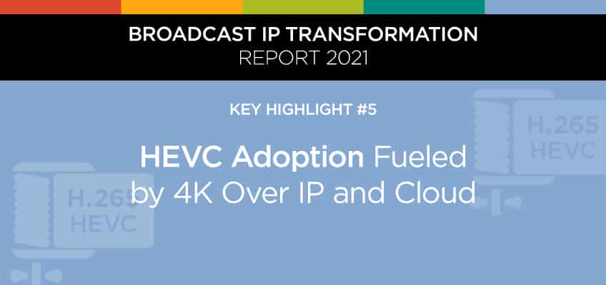 As our Broadcast IP Transformation Report 2021 shows, the move to decentralized workflows has helped with the growth in adoption of HEVC, but is this just another pandemic trend or are the “codec wars” truly over as we predicted they would be in last year’s report?