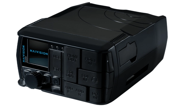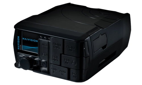 Haivision Air encodes and transmits HD-quality video over 5G, 4G, 3G, and WiFi networks. With an integrated rechargeable battery within its compact enclosure, it can easily be carried in a dedicated pouch, clipped to a belt or mounted on a tripod.
