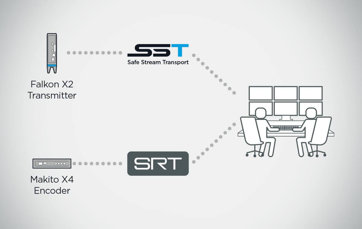 The Falkon X2 is a key component of the Haivision broadcast ecosystem of products, sitting alongside the Makito X4 video encoder and the Haivision Pro transmitter for contribution. It integrates seamlessly into workflows with products including the Haivision StreamHub receiver, Haivision Hub 360 cloud master control, and the Haivision SRT Gateway. Together these products enable you to send high-quality live video from events anywhere to productions on premises or in the cloud.